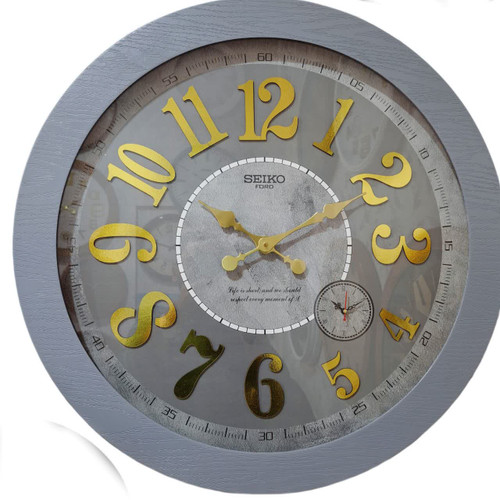 ساعت دیواری سیکو طوسی چوبی 70 سانتی‌متر با اعداد طلاییناموجود
