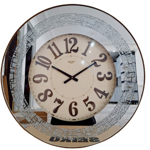 ساعت دیواری سیکو چوبی سایز 60 قهوه ای داخل کرم اعداد طلایی
