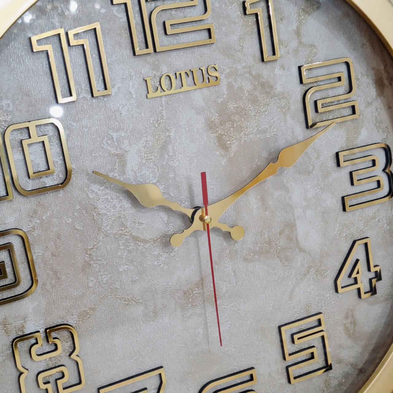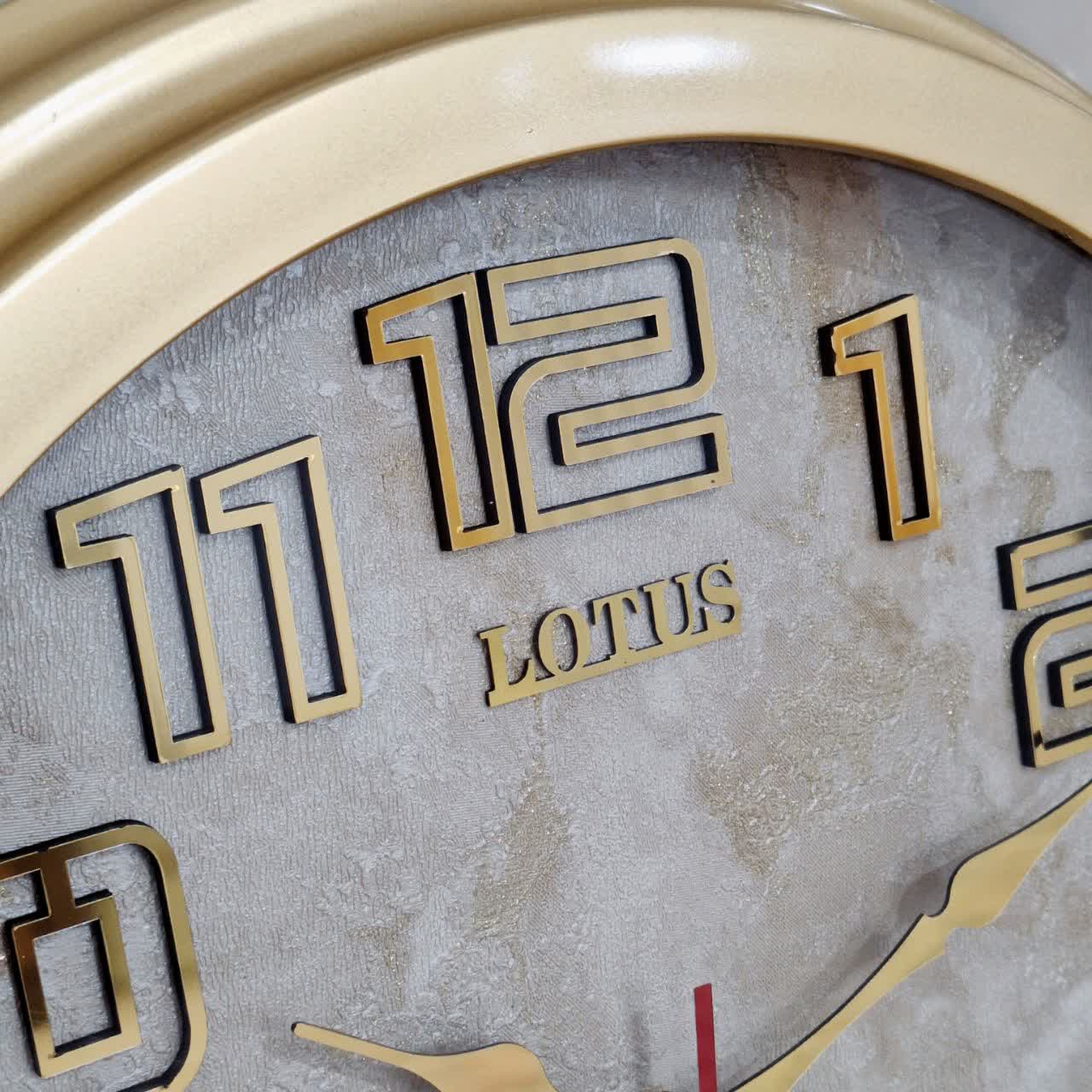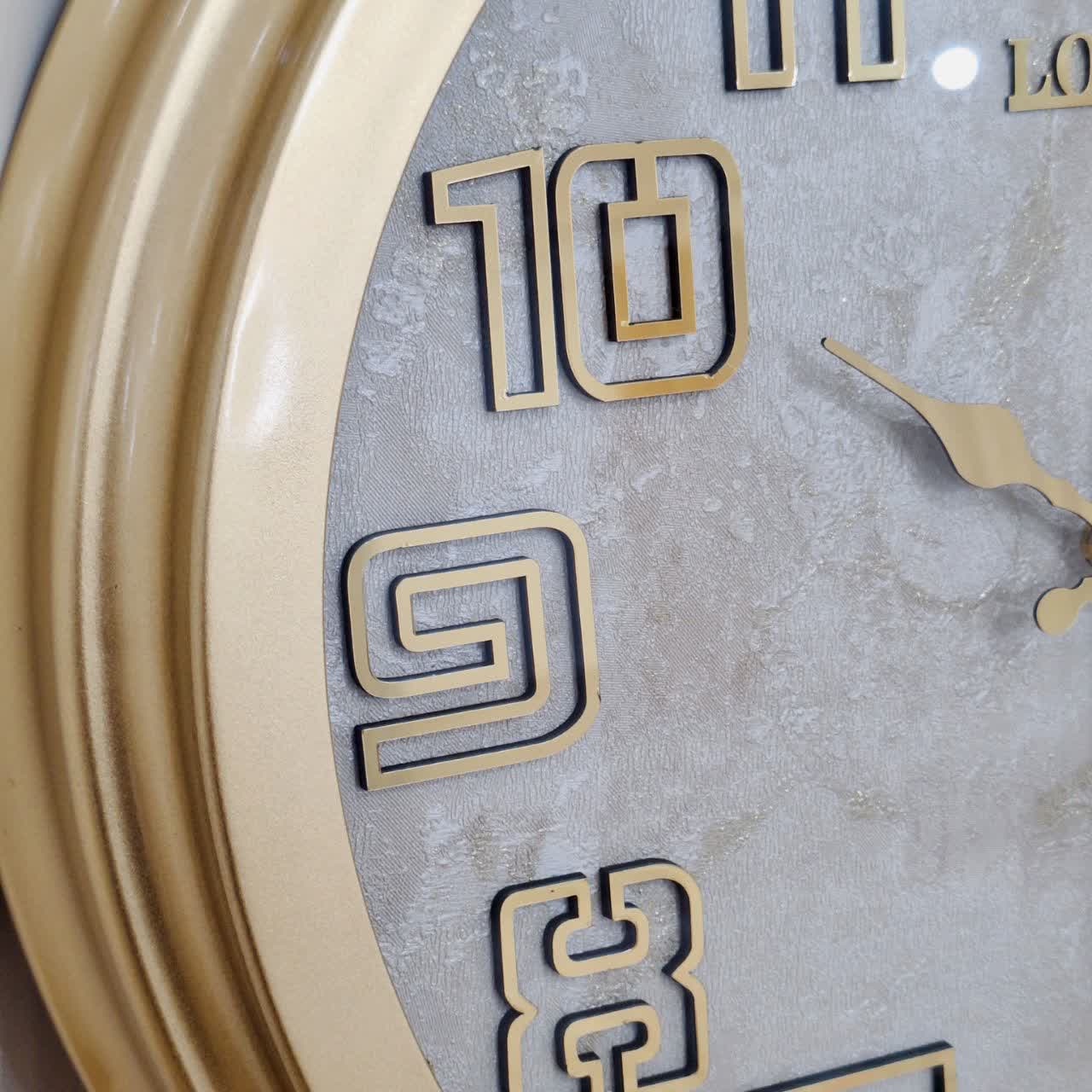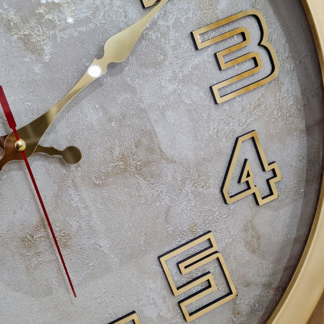 ساعت دیواری طلایی 40 سانتیمتری فایبر با اعداد انگلیسی برجسته