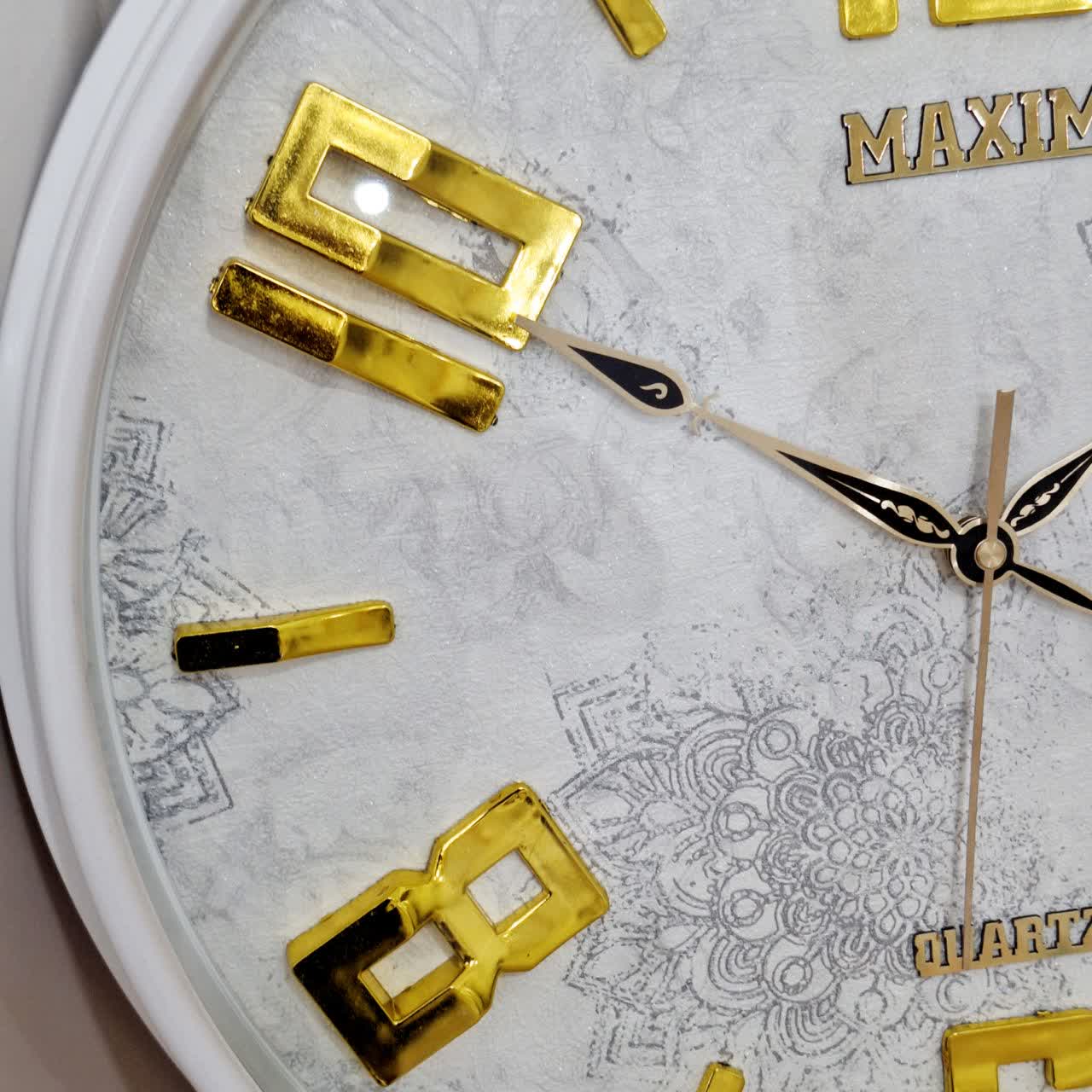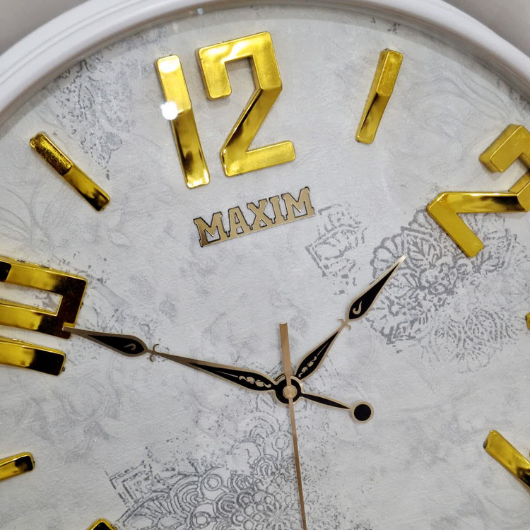 این ساعت دیواری با ترکیب رنگ سفید و طلایی، برای سبکهای دکوراسیون مدرن، مینیمال و حتی کلاسیک مناسب است. جلوه خاص آن باعث میشود به عنوان نقطه کانونی دیوار سالن یا اتاق خواب بدرخشد و هارمونی زیبایی ایجاد کند.