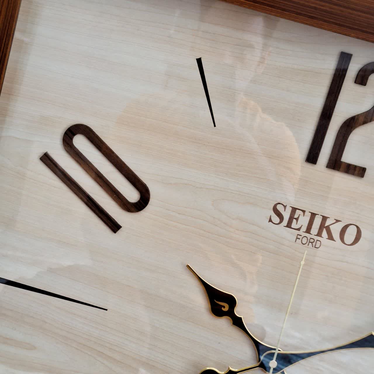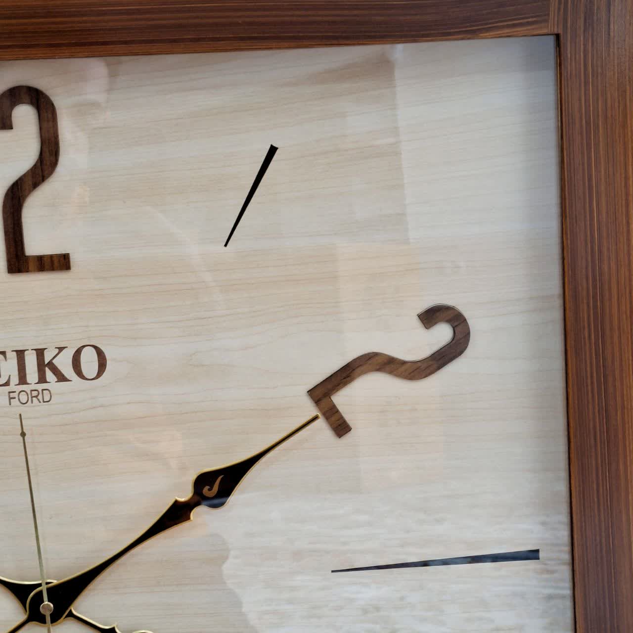 ساعت دیواری چهارگوش ۷۰ سانتی سیکو چوبی کرم قهوهای با اعداد ترکیبی انگلیسی خطی