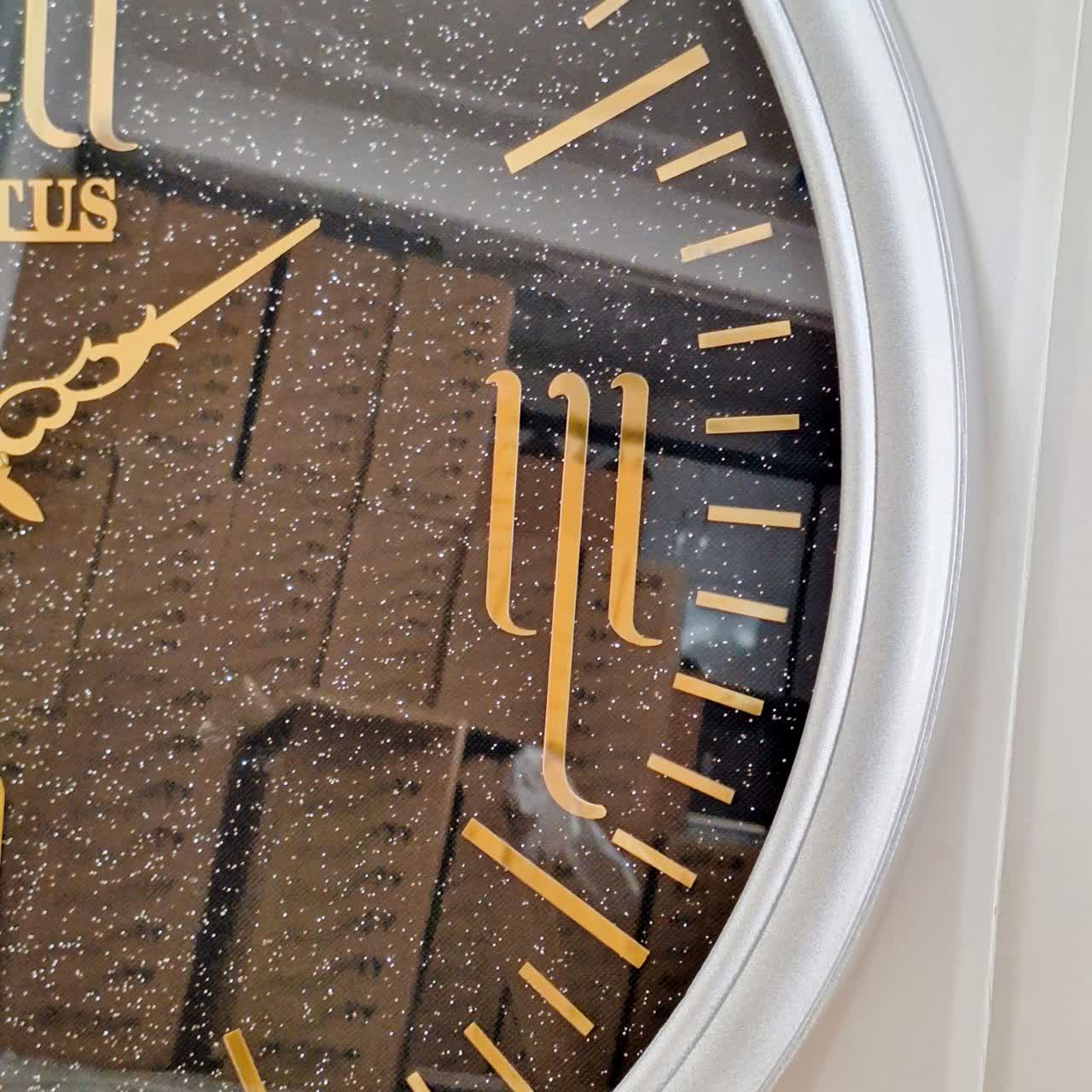 ترکیب رنگ نقرهای قاب با صفحه مشکی، کنتراستی قدرتمند و مدرن ایجاد کرده که در کنار رنگ طلایی اعداد رومی، حس شکوه و اصالت را تقویت میکند. این ترکیب رنگی برای دکوراسیونهای لاکچری، مدرن و نئوکلاسیک انتخابی فوقالعاده محسوب میشود.