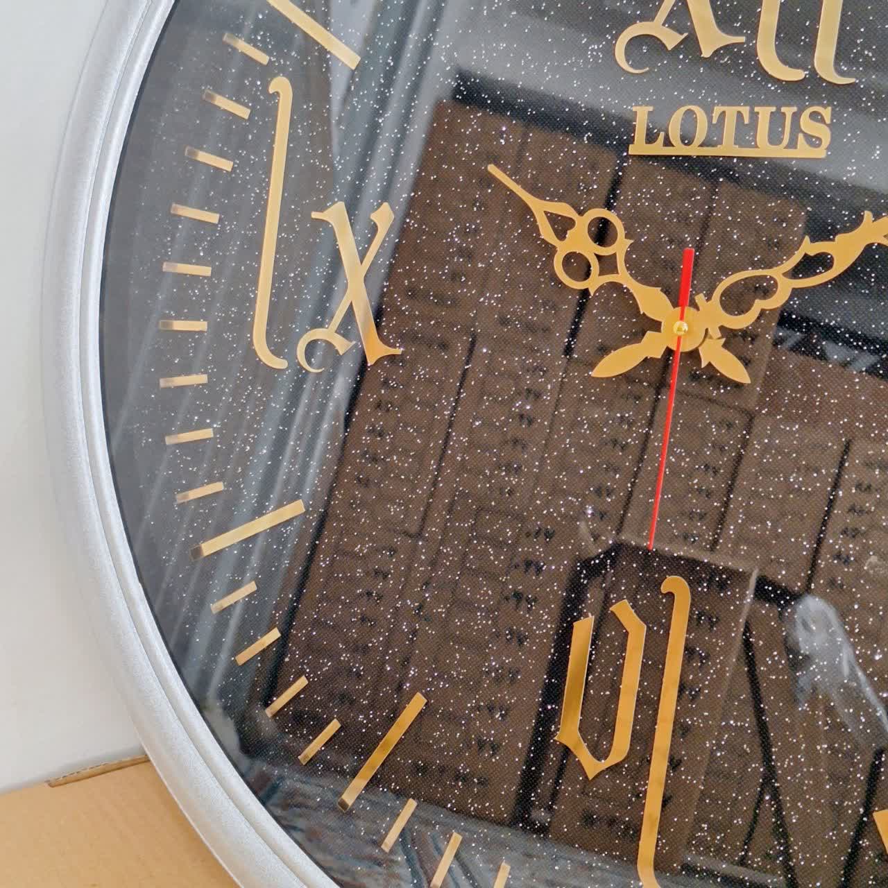ساعت دیواری گرد ۶۵ سانتی لوتوس نقرهای مشکی رومی طلایی