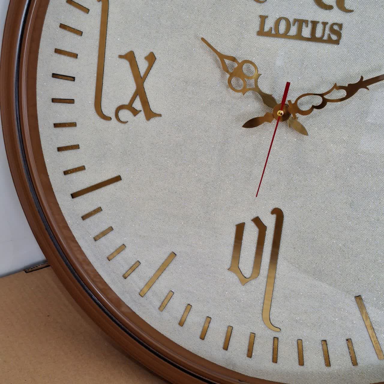 ساعت دیواری گرد ۶۵ سانتی لوتوس قهوهای کرم اعداد یونانی طلایی